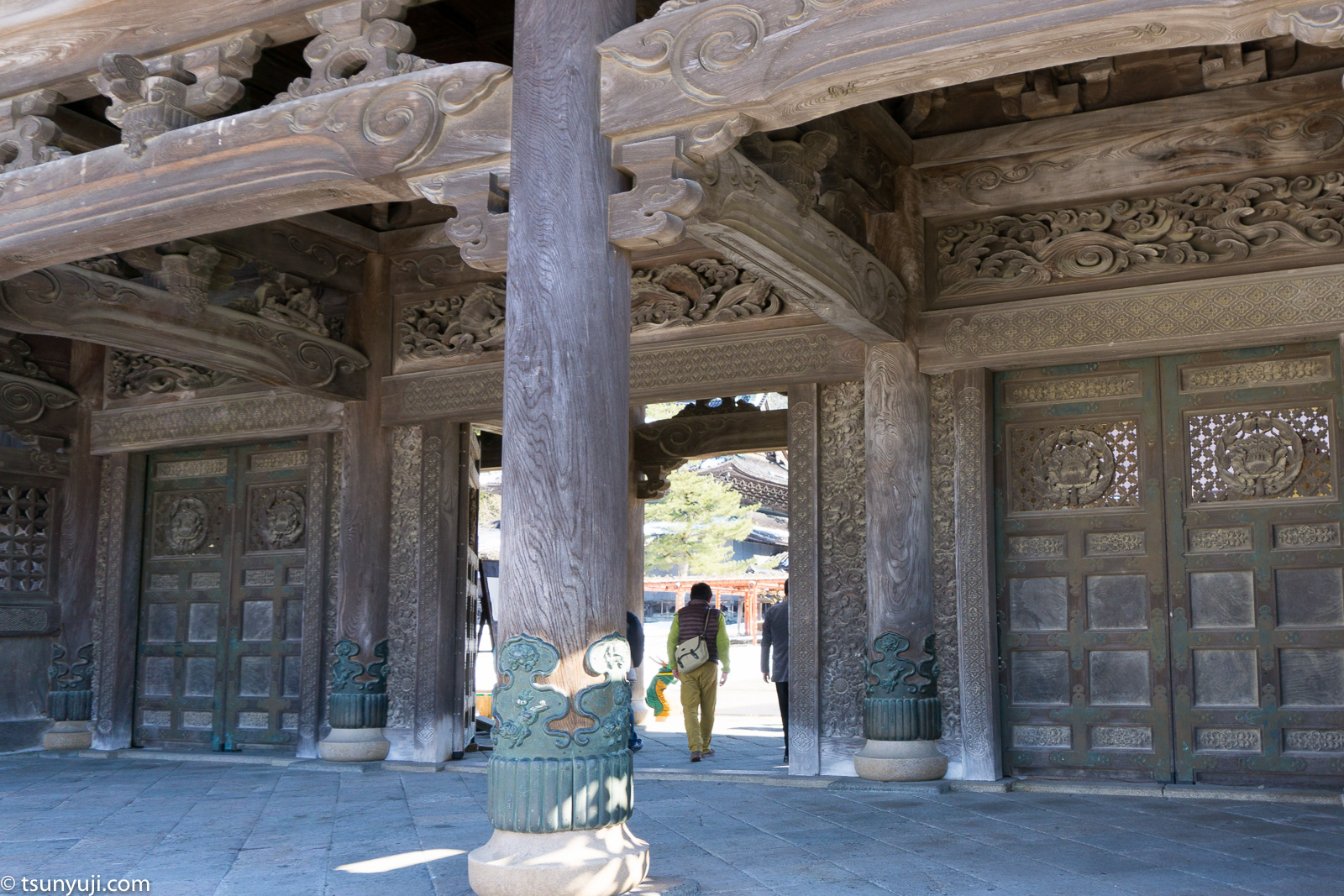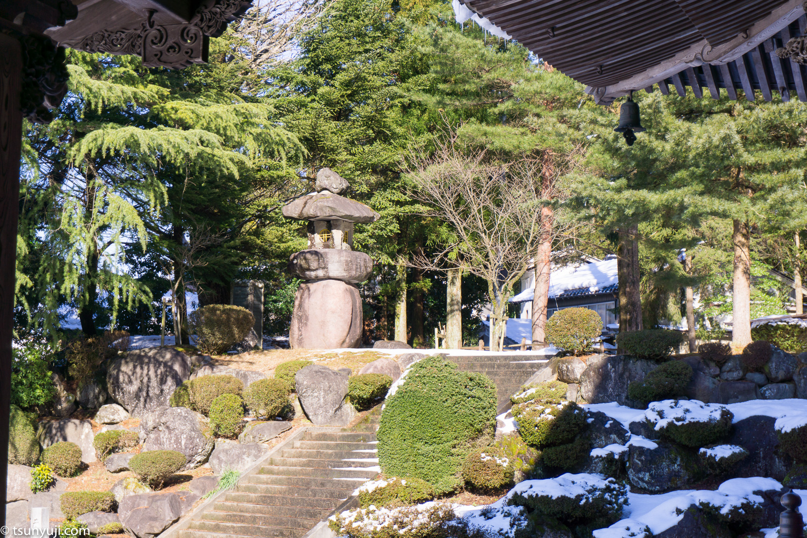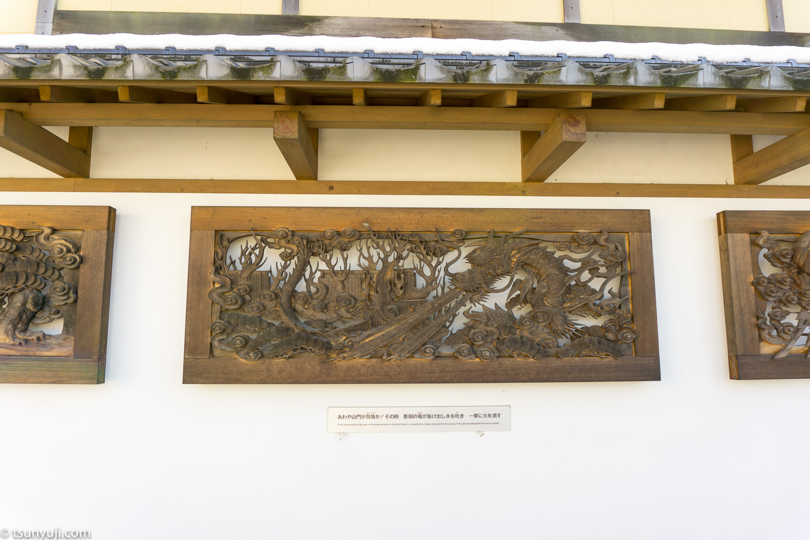富山県は井波別院・瑞泉寺へ参拝、雪景色のたいへん綺麗で木彫りが素晴らしい木造建築の建物を見学しました。