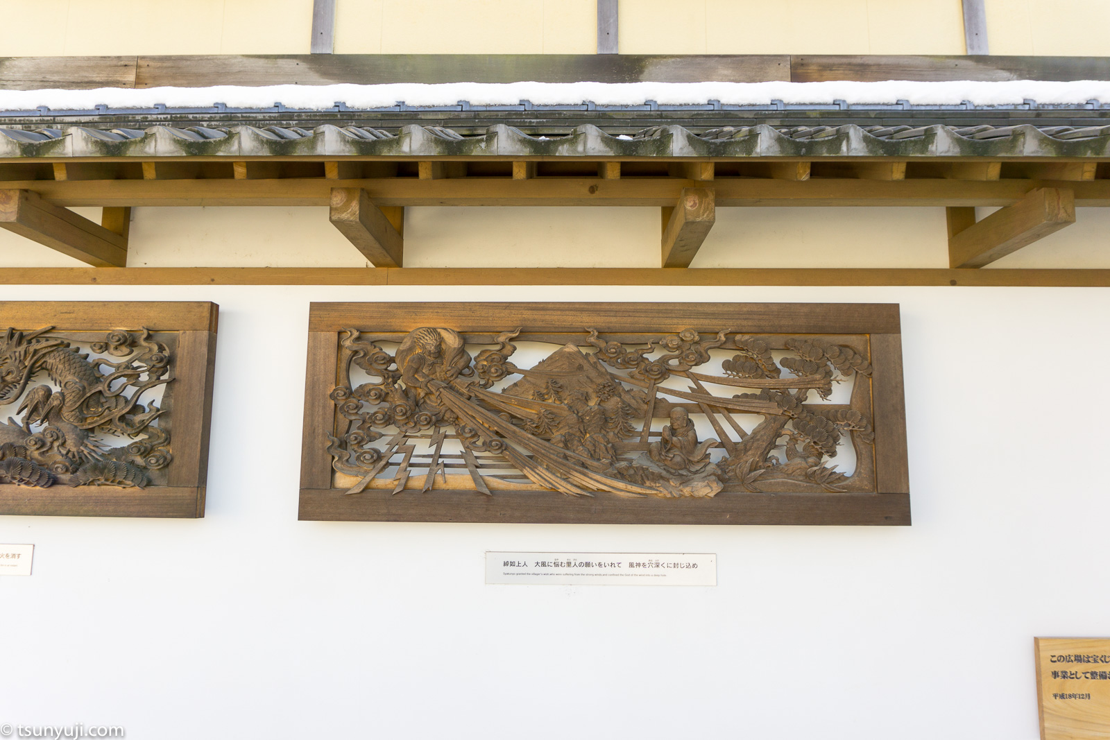 富山県は井波別院・瑞泉寺へ参拝、雪景色のたいへん綺麗で木彫りが素晴らしい木造建築の建物を見学しました。